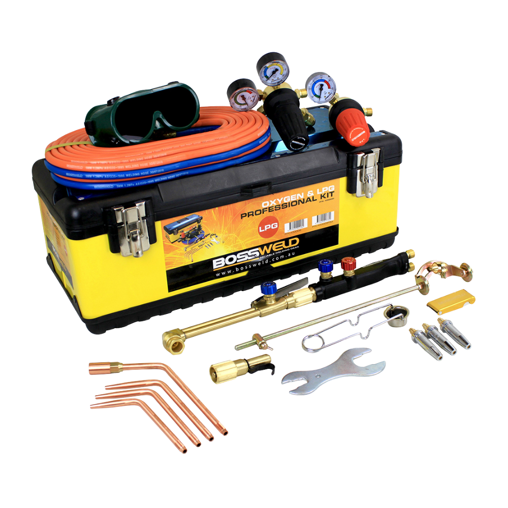 BOSSWELD OXYGEN/LPG CUTTING & BRAZING KIT TOOLBOX WITH FLASHBACK ARRESTORS